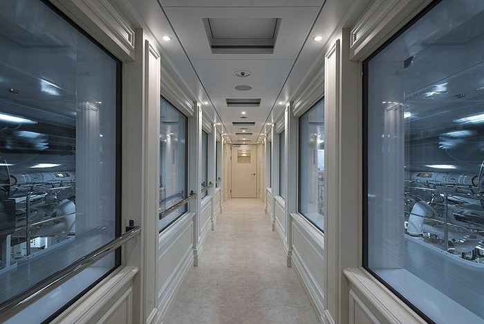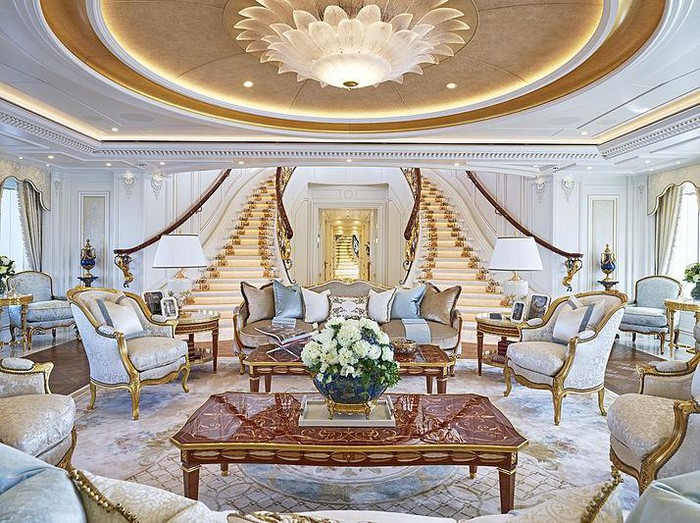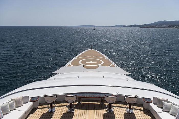 Đáng chú ý, du thuyền còn có khoang siêu rộng làm sân đáp của 2 máy bay trực thăng.