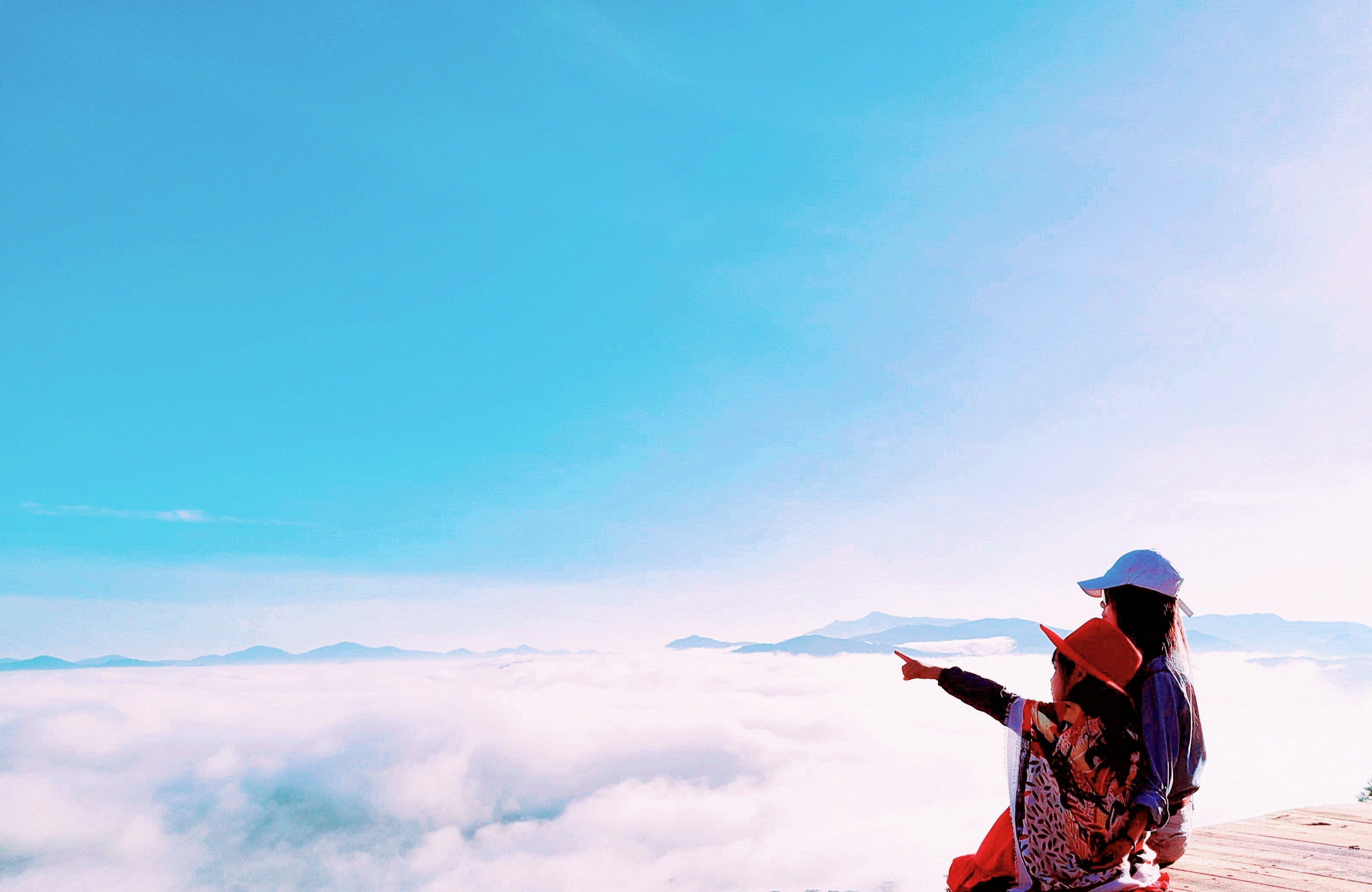 "Ngày hôm trước, Nghé vừa cùng mẹ chinh phục thác Pongour khá xa. Khi trở về nơi nghỉ con còn muốn đi dạo chợ đêm thành phố, ngắm hồ Xuân Hương. Phải tới 11h khuya con mới về nghỉ ngơi, đi ngủ. Lo con mệt nên mình định "trốn con" đi săn mây nhưng không ngờ bé Nghé "phát hiện", nhanh chóng thức dậy, mặc quần áo và lên đường", chị Hà kể. Khi tới Cầu Đất, trời chỉ vừa hửng sáng, nhiệt độ rất thấp. "Do không chuẩn bị đồ mùa đông nên mình mặc quần đùi còn bé Nghé mặc váy. Mình quàng chiếc khăn cho con, lo con lạnh. Thế nhưng con nói không sao, rất háo hức chờ săn mây", chị Hà nhớ lại.