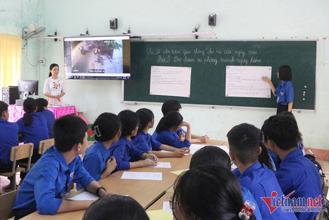 Bước đầu, cô Nữ lồng ghép giáo dục ATGT ngay trong những tiết Hóa Học do mình đảm nhiệm. Nghe qua như không liên quan, nhưng khi cô giải thích mới thấy sự tinh tế của cô giáo 8x.