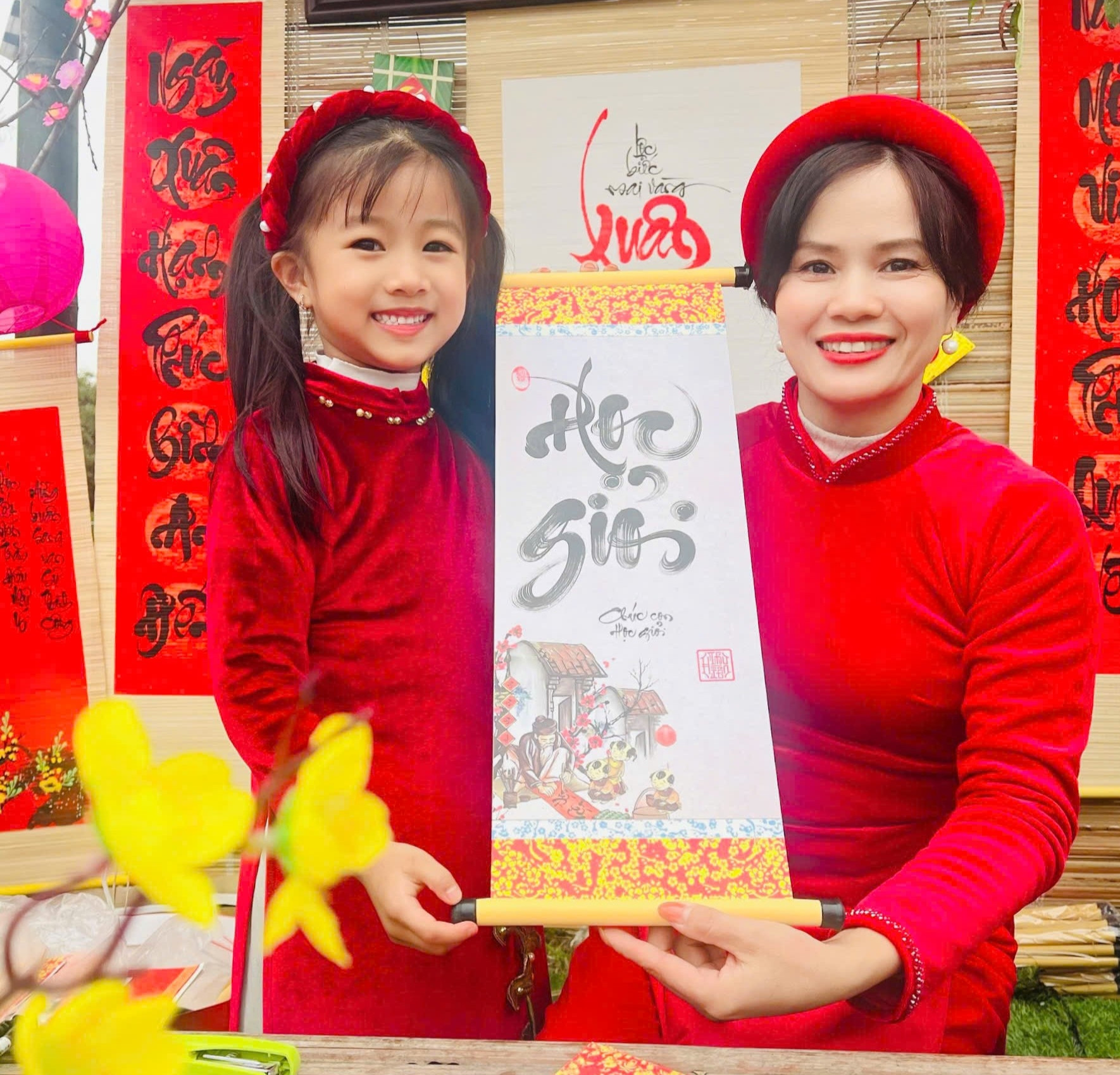 Mỗi dịp Tết đến, xuân về, cô thường viết thư pháp chúc tặng học sinh. “Thấy các em chụp ảnh khoe treo chữ cô viết tặng ở góc học tập hoặc nơi trang trọng trong nhà, tự nhiên mình cũng thấy vui và hạnh phúc”, cô Hiền chia sẻ.