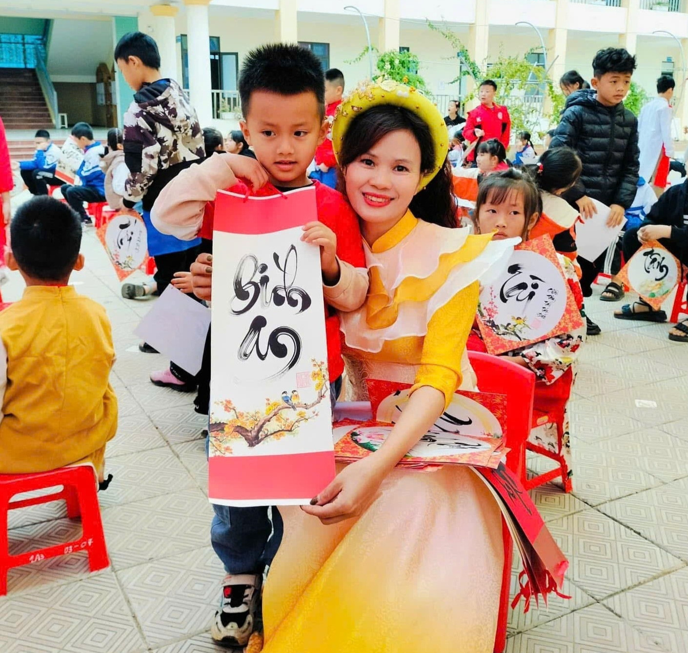 Những ngày cận Tết, ngoài chốt lại công việc trường lớp, với tài lẻ của mình, cô giáo Phạm Thu Hiền thường xuyên viết tặng chữ thư pháp cho học sinh, với mong mỏi giúp lan tỏa văn hóa Việt.