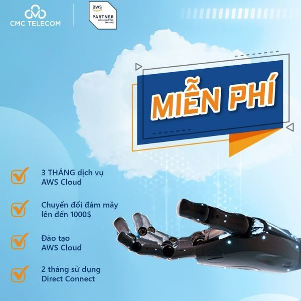Để tiếp tục cuộc hành trình hỗ trợ các doanh nghiệp, CMC Telecom mang đến cơ hội trong tháng 05 cho khách hàng sử dụng dịch vụ AWS. Cụ thể, từ nay đến 31/5/2022, khi đăng ký dịch vụ AWS thông qua CMC Telecom, khách hàng sẽ nhận những ưu đãi giá trị sau đây: Miễn phí tối đa 3 tháng Credit AWS; Miễn phí lên đến 1000USD dịch vụ dịch chuyển hạ tầng bao gồm đánh giá, xem xét kiến trúc và hỗ trợ triển khai; Miễn phí đào tạo AWS Cloud: tổ chức Immersion Day và tư vấn lộ trình dịch chuyển hạ tầng lên cloud cho khách hàng; Miễn phí 02 tháng sử dụng thử dịch vụ AWS Direct Connect.
