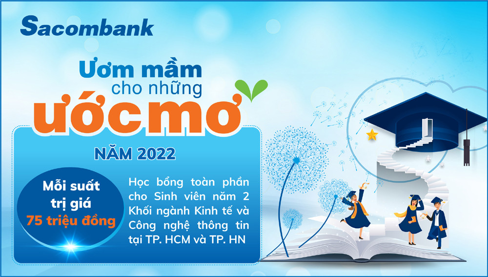 Sacombank tiếp nhận hồ sơ xét học bổng từ nay đến ngày 15/10/2022. Ứng cử viên đủ điều kiện sẽ được tham dự ngày hội học bổng tập trung do Sacombank tổ chức để chinh phục những suất học bổng toàn phần. Sinh viên có thể xem thông tin chi tiết và nộp hồ sơ tại website sacombankcareer.com. Kết quả sẽ được công bố trước ngày 1/11/2022.