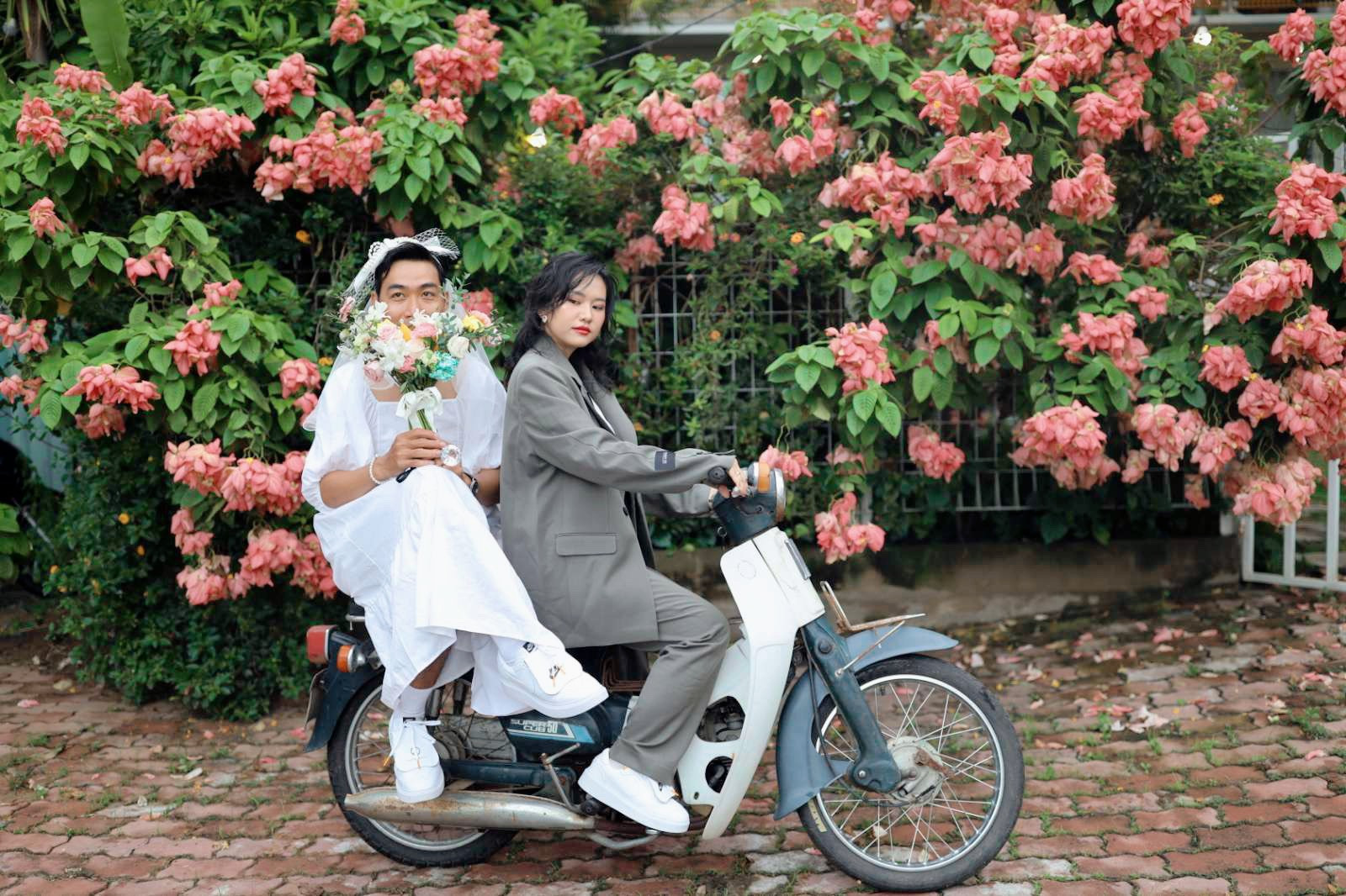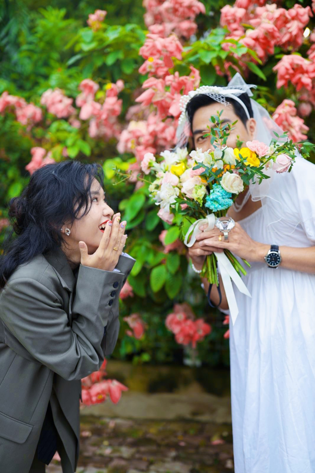 Trong ảnh, cô dâu mặc vest còn chú rể mặc váy cưới và đeo voan trên đầu. Những bức ảnh cưới thể hiện sự vui vẻ, hồn nhiên của tuổi trẻ. Dù là hoán đổi thân phận nhưng chú rể tỏ ra không chút ngại ngùng và còn được nhận xét là “diễn” rất sâu. Bộ ảnh cưới sau khi được chia sẻ đã nhận về rất nhiều lời khen từ ý tưởng đến sự nhí nhảnh của cặp cô dâu chú rể.