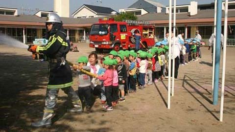 | Giờ học cứu hỏa của học sinh lớp 1 Nhật Bản. Ảnh do phụ huynh người Nhật gốc Việt cung cấp. |
