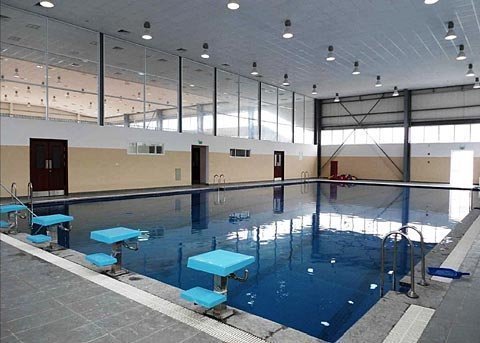 Hồ bơi hiện đại được bố trí trong nhà với cầu nhảy, phục vụ những học sinh yêu thích môn bơi lội đỉnh cao với nhiệt độ nước 30 độ C quanh năm, các em có thể sử dụng bất cứ thời điểm nào.