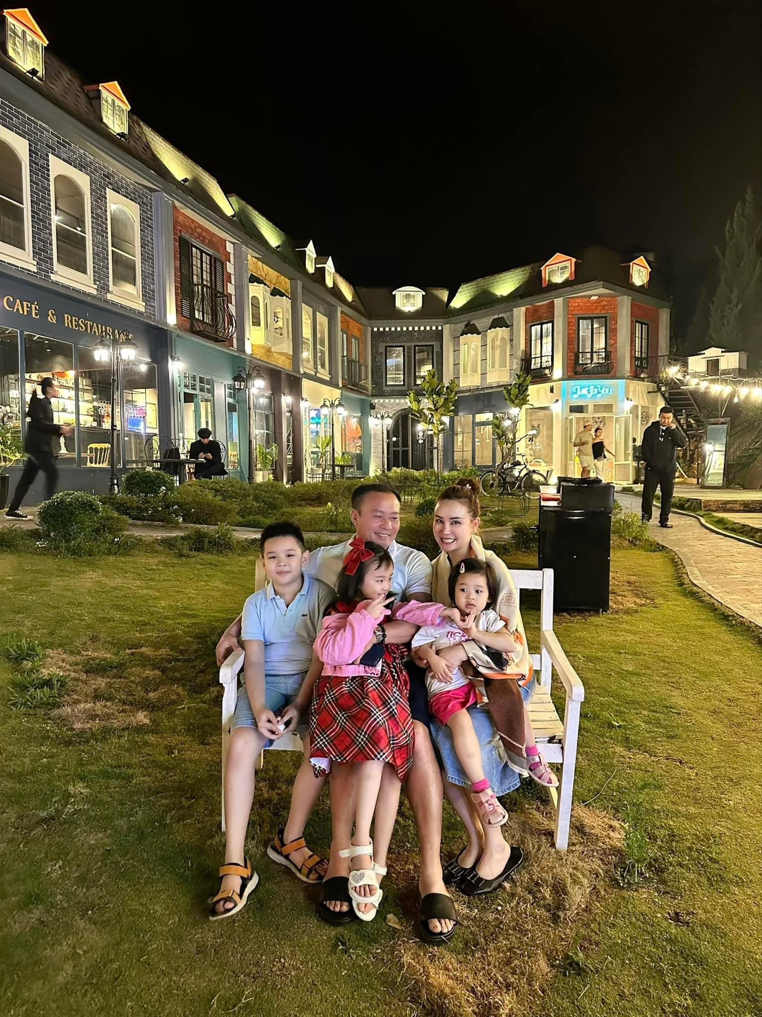 Trên trang cá nhân, nữ ca sĩ Vy Oanh đăng khoảnh khắc cùng chồng đại gia và 3 con chăm sóc cơ ngơi xanh mướt tại Đà Lạt.
