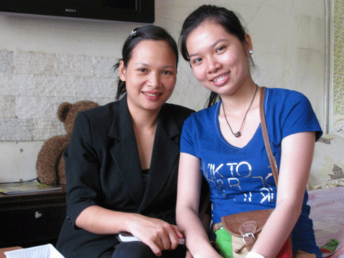 | Huyền bên những người bạn mới cùng Khoa Báo chí (ảnh: Bá Hùng). |