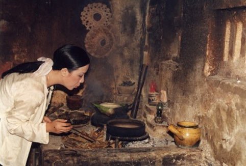 Thấy chúng tôi làm việc có vẻ say sưa, bác Hai gái nói: "Hồi xưa, cũng vì cái bếp mà tao mới được về làm vợ bác Hai mày". Cô Út nhìn mẹ chồng rồi cười nói: "Bởi vậy cho nên bây giờ má vẫn bắt con nấu củi, không cho xài điện, xài gas". Rồi cô nói như mắc cỡ: "Nếu không giỏi chuyện bếp núc thì con lâu con mới được về đây làm dâu của má!".
