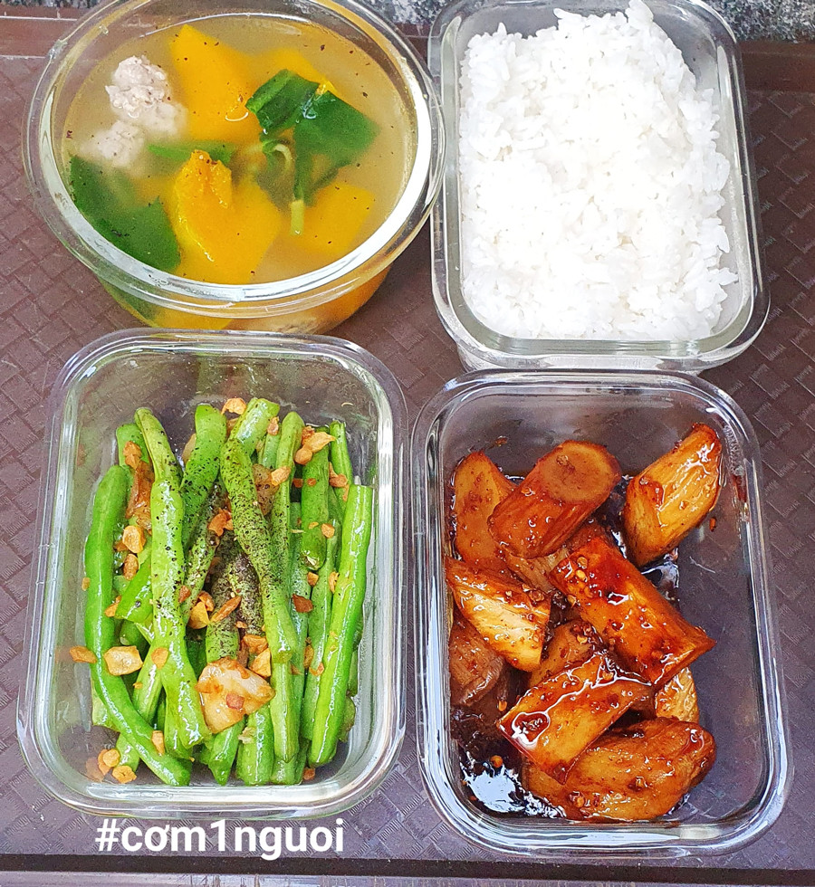 Dù sống một mình, công việc bận rộn nhưng Quốc rất chăm chỉ mang cơm đi làm. Bữa ăn nào anh cũng chuẩn bị tươm tất từ 3 đến 4 món. Anh chủ động cân nhắc, lên danh sách thực đơn cho 1 tuần. Cuối tuần, anh sẽ đi chợ mua thực phẩm, nhặt sạch, sơ chế và để tủ lạnh.