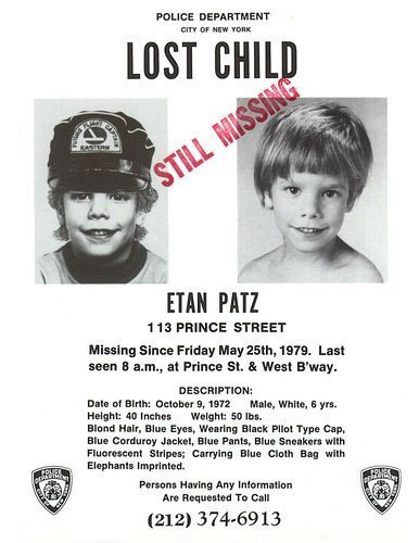 Suốt cả đêm Etan không về nhà, cả thành phố New York đâu đâu cũng phủ đầy hình của một cậu bé có khuôn mặt dễ thương, nụ cười ngọt ngào. Trên tấm hình là dòng chữ lạnh người: "Mất tích". Thậm chí, khuôn mặt của cậu bé đã xuất hiện trên cả hộp carton đựng sữa.