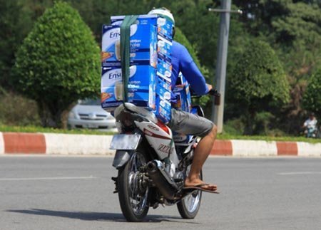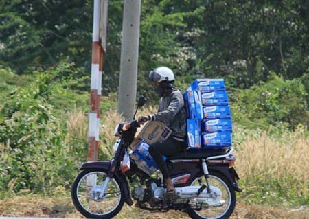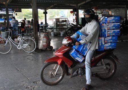 Mỗi ngày, có hàng chục chiếc xe máy chờ sẵn trước lối vào Khu kinh tế cửa khẩu Mộc Bài. Khi những thùng sữa được mang ra và tập kết, thì ngay lập tức những chiếc xe máy trờ đến “ăn” hàng chở về thị trấn Gò Dầu cách đó khoảng 7-8 cây số.
