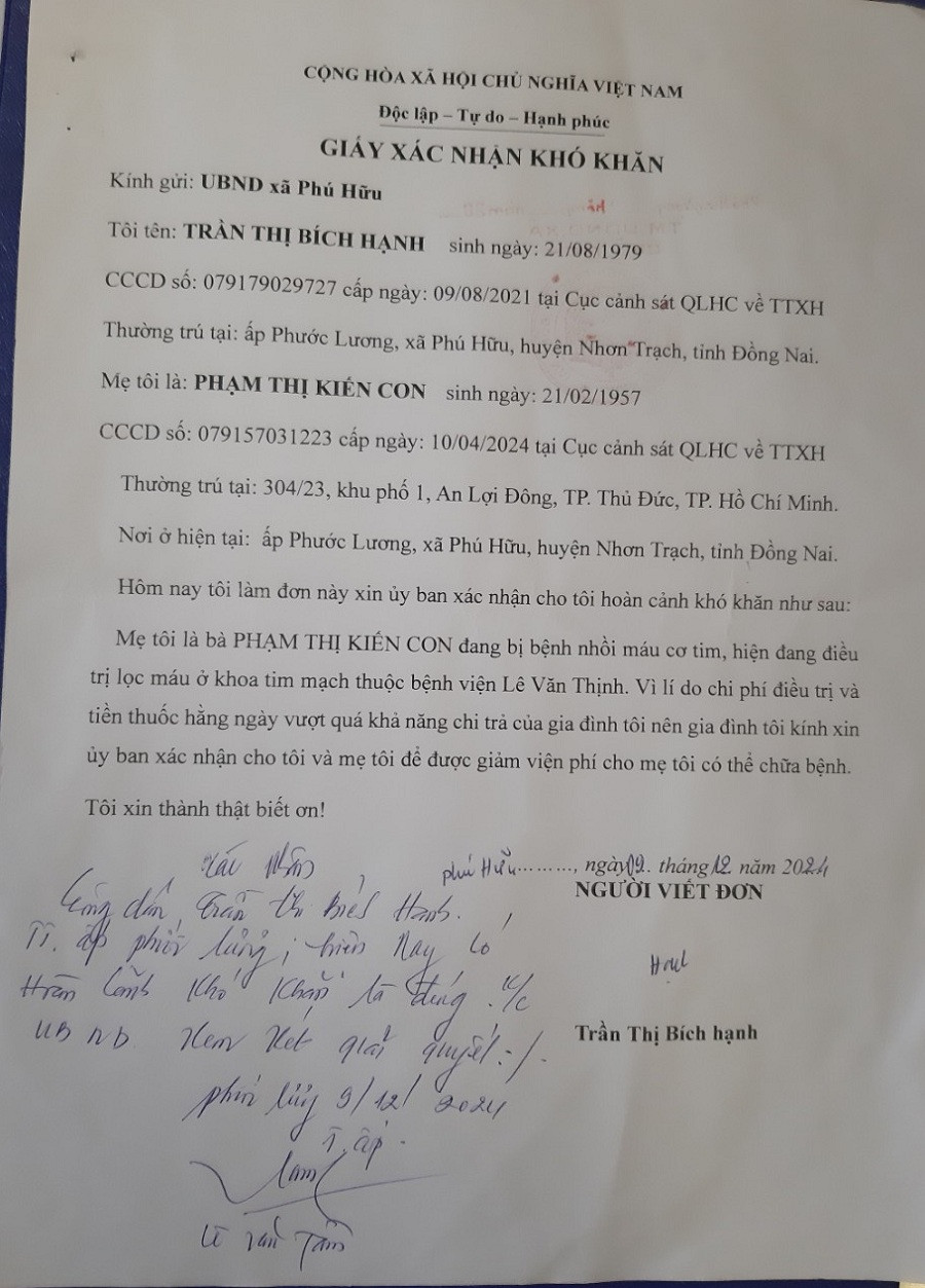 Mọi sự giúp đỡ xin gửi về: 1. Gửi trực tiếp: Phòng Công tác xã hội bệnh viện Lê Văn Thịnh hoặc bà Trần Thị Bích Liên hoặc bà Trần Thị Bích Hạnh; Địa chỉ: Ấp Phước Lương, xã Phú Hữu, huyện Nhơn Trạch, tỉnh Đồng Nai. SĐT: 0909431308 (bà Liên) hoặc 0708837365 (bà Hạnh). 2. Ủng hộ qua Báo VietNamNet: Ghi rõ ủng hộ MS 2024.359 (Bà Phạm Thị Kiến Con) Chuyển khoản: Báo VIETNAMNET Số tài khoản: 0011002643148. Sở giao dịch Ngân hàng Ngoại Thương Việt Nam - 198 Trần Quang Khải, Hà Nội - Chuyển khoản từ nước ngoài: Bank account: Báo VIETNAMNET - The currency of bank account: 0011002643148 - Bank:- BANK FOR FOREIGN TRADE OF VIETNAM - Address: 198 Tran Quang Khai, Hanoi,Vietnam - SWIFT code: BFTVVNV X - Qua TK ngân hàng Vietinbank: Chuyển khoản: Báo VietNamNet Số tài khoản: 114000161718 Ngân hàng TMCP Công Thương Việt Nam - Chi nhánh Đống Đa - Chuyển tiền từ nước ngoài: Vietnam Joint Stock Commercial Bank for Industry and Trade, Dong Da Branch - Address: 183 Nguyễn Lương Bằng, quận Đống Đa, Hà Nội - Swift code: ICBVVNVX126 3. Hoặc trực tiếp báo VietNamNet: - Phía Bắc: Địa chỉ: tầng 3, tòa nhà C’Land,156 Xã Đàn 2, phường Nam Đồng, quận Đống Đa, Hà Nội. - Phía Nam: Văn phòng đại diện báo VietNamNet phía Nam, số 27 Nguyễn Bỉnh Khiêm, Quận 1, TP.HCM. Điện thoại: 19001081 |