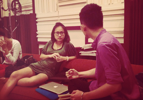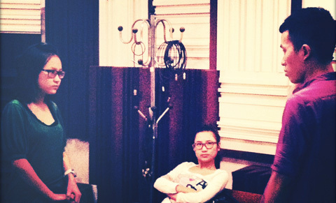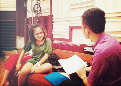 Trong khi cô em đang được chỉ dẫn dạy hát thì cô chị ngồi xem với tư cách khán giả