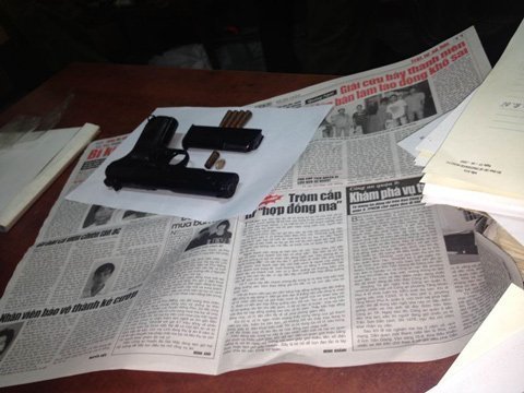 | Tên Phan Văn Ẩn và khẩu súng bị công an thu giữ |