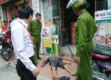 Người dân cho biết: đó là một con nghiện, hắn vừa đi đến trước cửa hiệu thuốc tây Hải Yến thì bị sốc thuốc ngã lăn ra đất.