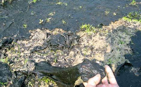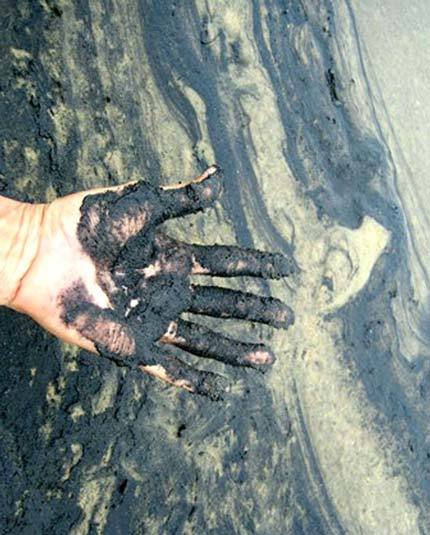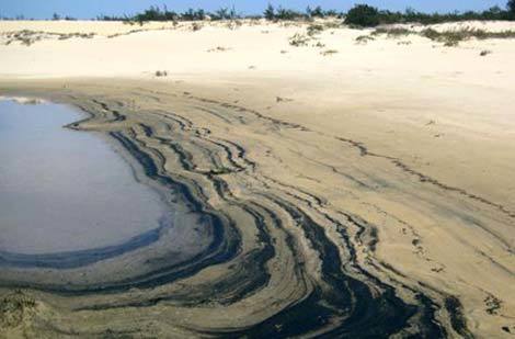 Cát trắng đang bị nhuốm bởi một màu đen.
