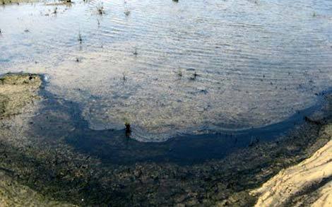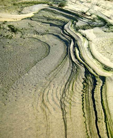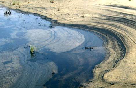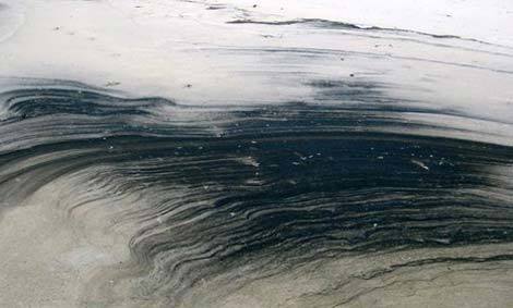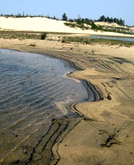 Carbon đen trong những vũng nước được gió đẩy lên bờ cát.