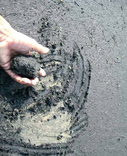 Carbon đen bám một lớp dày trên cát trắng.