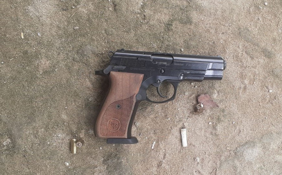 Biết không thể chống cự, Vương bỏ súng đầu hàng. Công an đã thu giữ một khẩu súng ngắn là vũ khí quân dụng, 14 vỏ đạn và 3 viên chưa sử dụng.