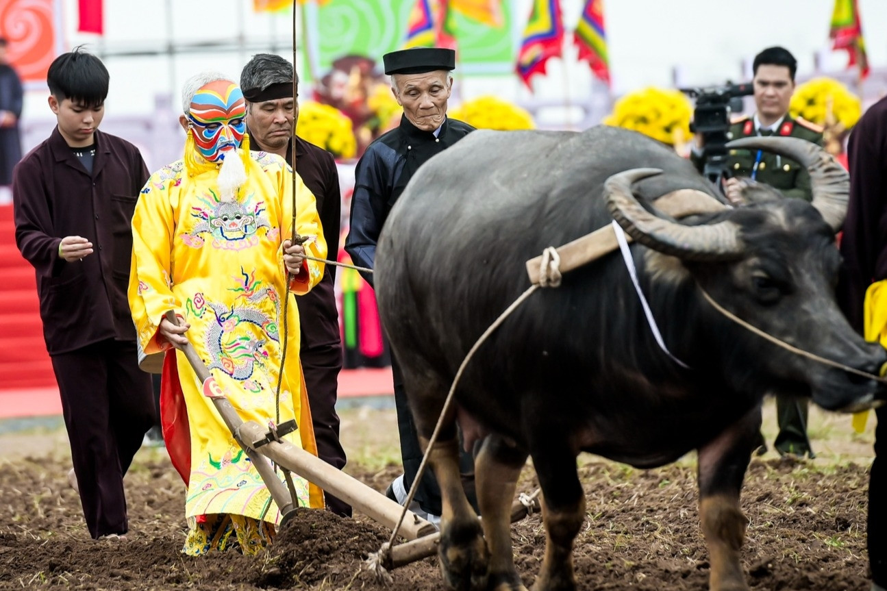Từ sáng sớm, từng đoàn rước đã tề tựu đông đủ trước sân miếu Tiên Công. Các “cụ Thượng” trong trang phục truyền thống, đầu đội khăn xếp, áo dài chỉnh tề, ngồi trên võng đào hoặc kiệu sơn son thếp vàng, được con cháu và dân làng cung rước linh đình.