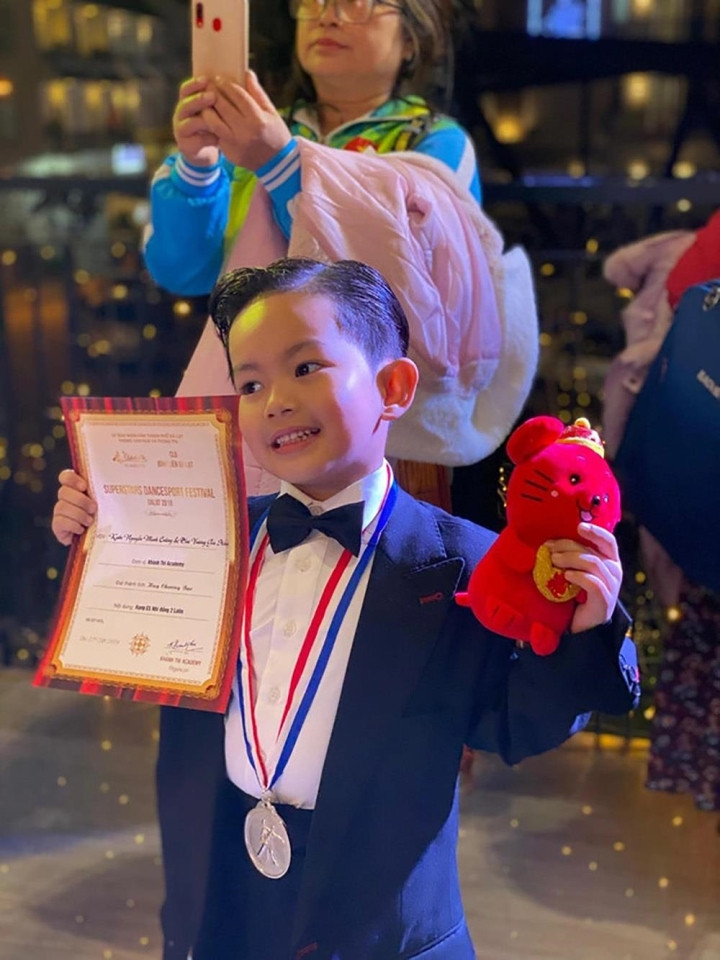 Bé Minh Cường - tên thân mật là Kubi dù mới 8 tuổi nhưng bộc lộ tài năng nhảy vượt trội, từng đạt giải Vàng quốc tế về dancesport cho thiếu nhi.