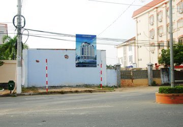 | Công trình cao ốc, khách sạn trăm tỉ đồng của ông Lèo trên đường Trần Hưng Đạo tạm ngừng thi công sau khi ông bị tạm giữ. Ảnh: TV |