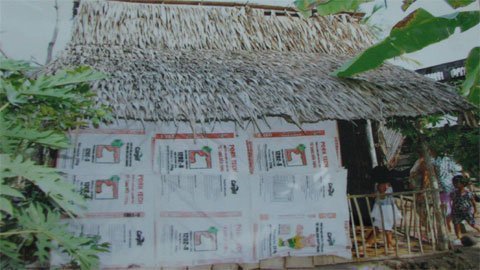 | Ngôi nhà lá đơn sơ được bà con chòm xóm dựng giúp. |