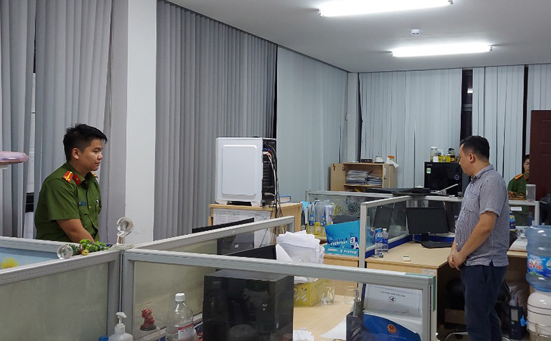 Ghi nhận tại Chi cục đăng kiểm số 8, các cán bộ Công an đã có mặt, sau đó vào bên trong để khám xét.