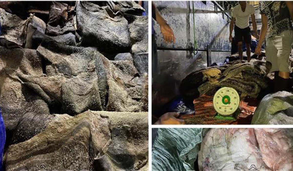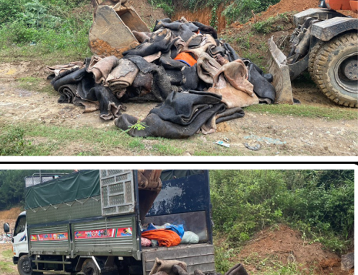 Tiến hành kiểm tra thùng xe, tổ công tác phát hiện nhiều mỡ, da động vật đã bị đổi màu và bốc mùi khó chịu. Ông V.V.G. không xuất trình được giấy tờ chứng minh nguồn gốc xuất xứ của số mỡ, da động vật trên.