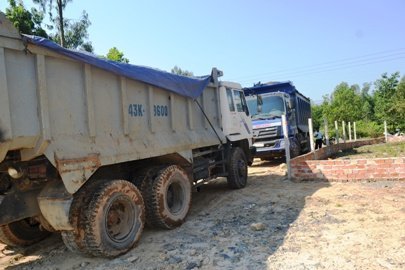 Mỗi ngày có hàng trăm xe chở đất ra vào mỏ đá Phước Thuận |