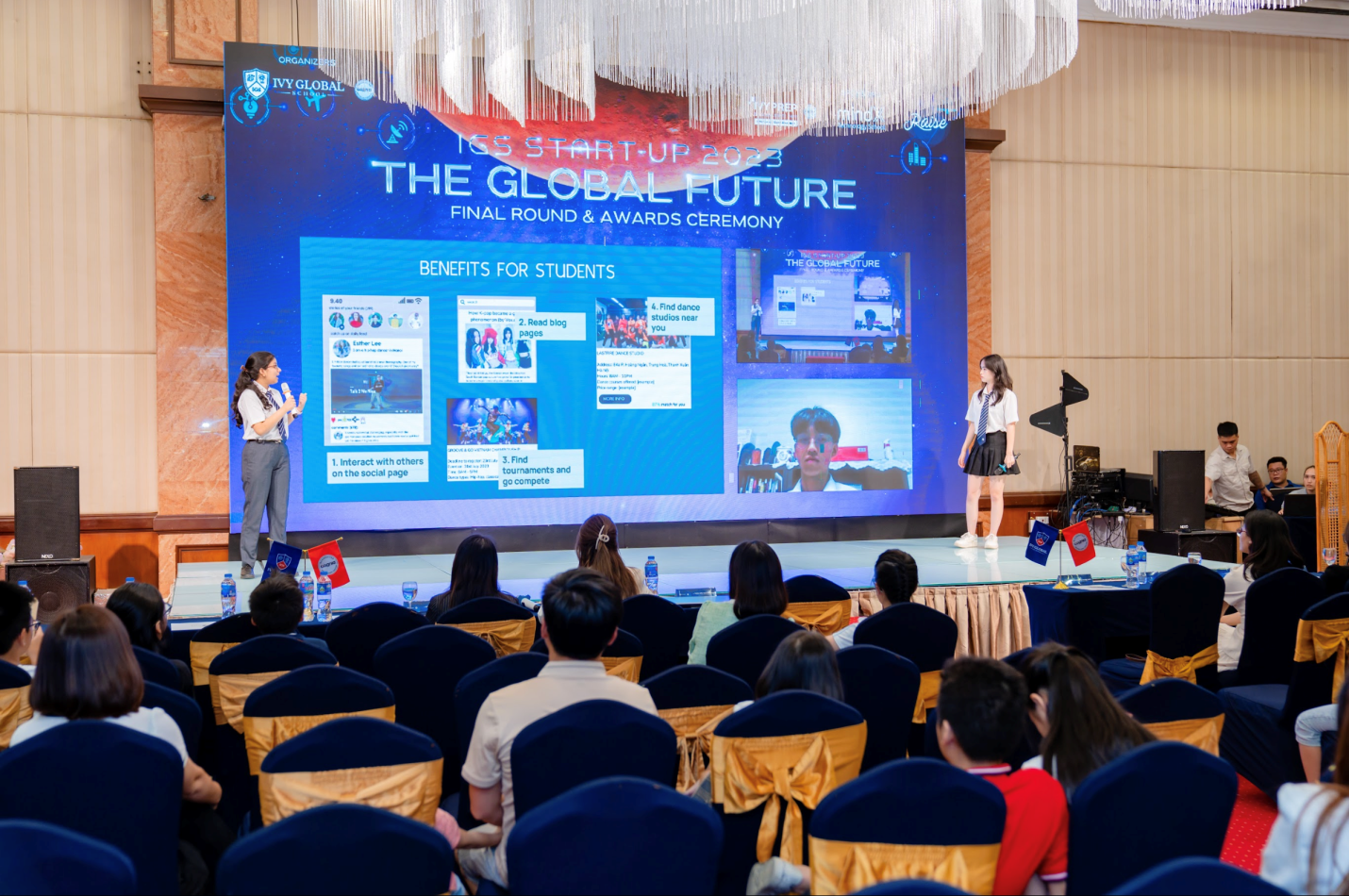Vòng Chung kết IGS Start-Up 2023 được tổ chức trực tiếp tại Hà Nội - TP.HCM và trực tuyến trên Fanpage của Ivy Global School. 6 dự án khởi nghiệp xuất sắc vào Vòng Chung kết đã được đông đảo học sinh và ban giám khảo ủng hộ nồng nhiệt và đánh giá cao. Đây cũng là cơ hội để các em được trình bày và tranh luận bảo vệ ý tưởng, thể hiện ước mơ và khát vọng của mình.