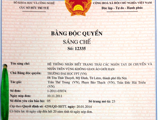 Sáng chế này được Viện Nghiên cứu công nghệ Trường Đại học FPT thuộc Tập đoàn FPT hoàn thành và nộp đơn xin cấp bằng sáng chế từ tháng 11/2011.