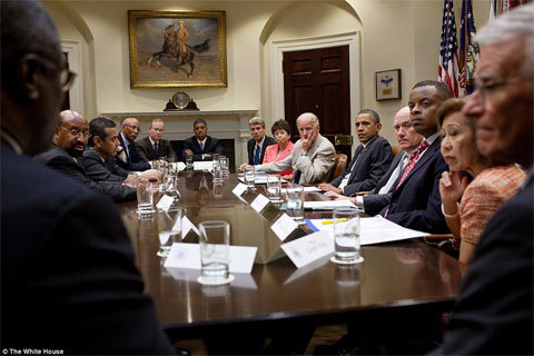 tại các cuộc hội đàm về khủng hoảng nợ, Nhà Trắng đã công bố bộ ảnh hậu trường