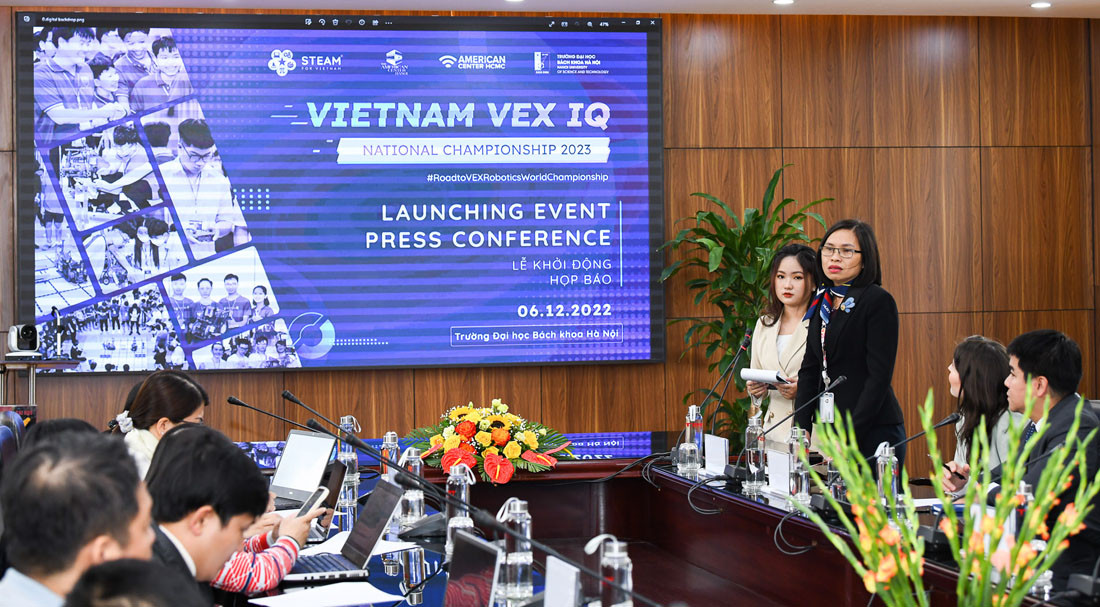 Ngày 6/12, tại Hà Nội, STEAM for Vietnam, Trung tâm Hoa Kỳ tại Hà Nội và TP.HCM trực thuộc Đại sứ quán và Lãnh sự quán Mỹ tại Việt Nam đã cùng Đại học Bách khoa Hà Nội chính thức công bố hợp tác tổ chức giải vô địch VEX IQ Robotics toàn quốc năm 2023.