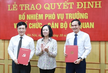 Tại buổi lễ, Ủy viên Bộ Chính trị, Bí thư Trung ương Đảng, Trưởng Ban Tổ chức Trung ương Trương Thị Mai trao quyết định bổ nhiệm Phó Vụ trưởng Vụ Tổ chức - Cán bộ cơ quan Ban Tổ chức - Trung ương cho ông Nguyễn Mạnh Hùng và ông Khuất Hữu Vân, thời hạn bổ nhiệm 5 năm.