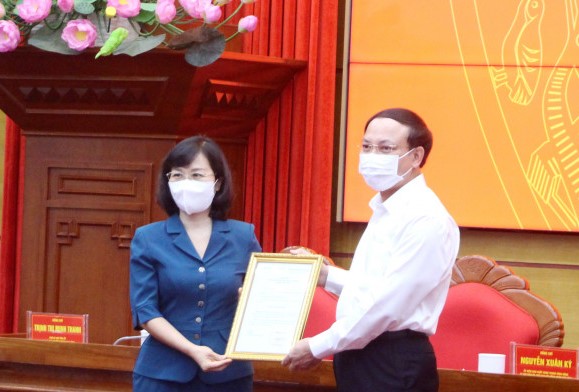 Bí thư Tỉnh ủy, Chủ tịch HĐND tỉnh Quảng Ninh Nguyễn Xuân Ký trao quyết định chuẩn y bà Trịnh Thị Minh Thanh, Phó Chủ tịch Thường trực HĐND tỉnh giữ chức vụ Phó Bí thư Tỉnh ủy |