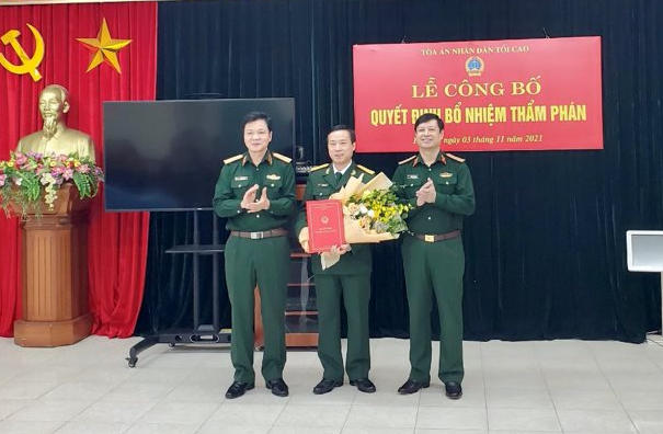 Quyết định bổ nhiệm Thẩm phán Trung cấp cho Trung tá Đỗ Ngọc Bình, thẩm tra viên Tòa án quân sự Thủ đô Hà Nội; quyết định bổ nhiệm Thẩm phán Sơ cấp cho Đại úy Hoàng Thị Phương Nhung, Thư ký Tòa án quân sự khu vực Thủ đô Hà Nội và Đại úy Nguyễn Thị Mai, Thư ký Tòa án quân sự Thủ đô Hà Nội.