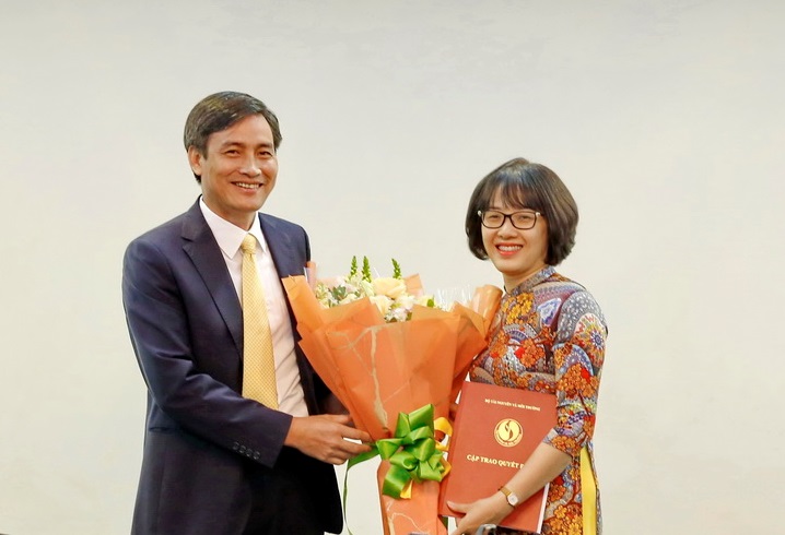 Thứ trưởng Trần Quý Kiên trao quyết định và chúc mừng bà Trịnh Thị Hương Thảo |