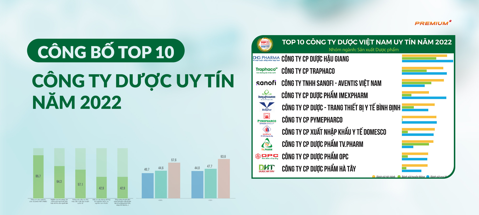 Bảng xếp hạng Top 10 Công ty Dược uy tín năm 2022 là kết quả nghiên cứu độc lập và khách quan của Vietnam Report được công bố thường niên từ năm 2016, dựa trên phương pháp Media Coding (mã hóa dữ liệu báo chí) trên truyền thông đã được Vietnam Report và các đối tác ứng dụng từ năm 2012, kết hợp nghiên cứu chuyên sâu các ngành trọng điểm, có tiềm năng tăng trưởng cao như: Bất động sản, Xây dựng, Công nghệ, Ngân hàng, Bảo hiểm, Thực phẩm - Đồ uống, Bán lẻ...