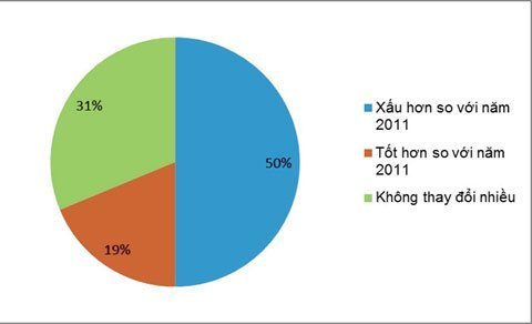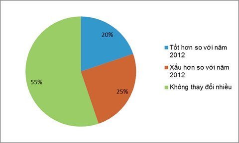 Có tới 55% số doanh nghiệp cho rằng nền kinh tế sẽ không cải thiện nhiều trong năm 2013. Số doanh nghiệp cho rằng tình hình kinh doanh trong năm 2013 sẽ xấu hơn năm 2012 nhiều hơn số doanh nghiệp tin vào điều ngược lại.