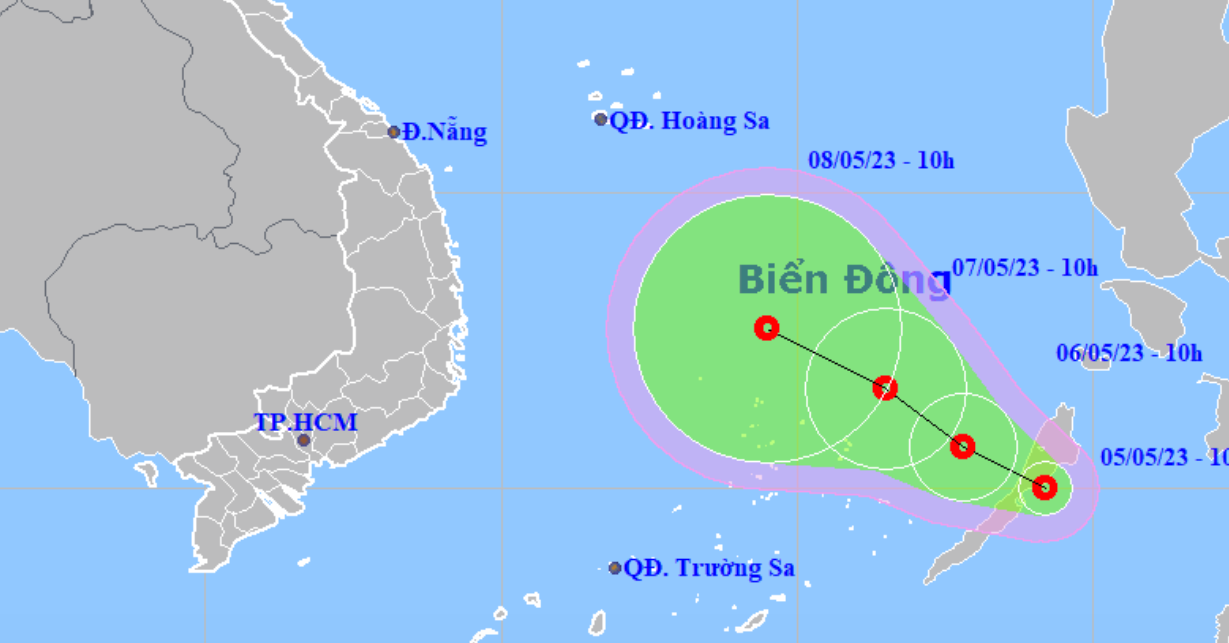 Sau khi vào Biển Đông, dự báo vào khoảng 10 giờ sáng 6-5, áp thấp nhiệt đới sẽ ở trên khu phía đông của khu vực giữa và nam Biển Đông. Cường độ cấp 6, giật cấp 8. Phía đông khu vực giữa và nam Biển Đông sẽ có rủi ro thiên tai cấp 3.