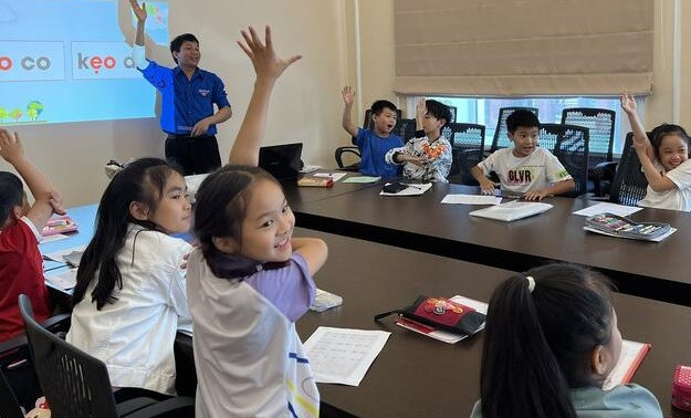 Chương trình "Tiếng Việt vui" hè 2023 thu hút nhiều em nhỏ tham gia sôi nổi.