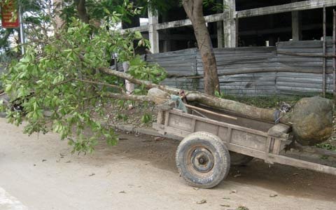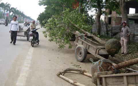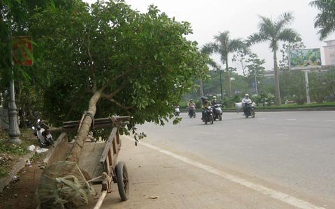 Theo anh Triều, để chở được cây lộc vừng qua cầu Bến Thuỷ, tránh các lực lượng kiểm lâm và quản lý thị trường thì phải đi lòng vòng. Xe chở thô sơ được kéo theo sau xe máy và chở cây cảnh đi vào trung tâm TP. Vinh.