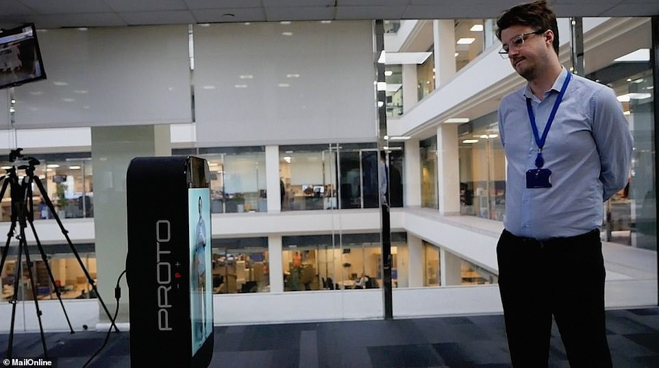 Thiết bị mang tên Proto M được chế tạo bởi một công ty Proto có trụ sở Los Angeles, California (Mỹ). Mẫu thiết bị mang kiểu dáng một chiếc hộp cao khoảng 2,5 mét, có khả năng tạo hình ảnh 3D thời gian thực của người đang thuyết trình, ngay cả khi họ ở một quốc gia khác.