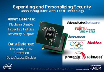 Công nghệ chống trộm tùy chọn Intel Anti-Theft (Intel AT) dành cho các máy tính xách tay sử dụng công nghệ vi xử lý Intel Centrino 2 với công nghệ vPro. Công nghệ Intel AT đưa ra lựa chọn kích hoạt thông qua một nhà cung cấp phần mềm độc lập (ISV) bảo mật hoặc một nhà cung cấp dịch vụ, một công nghệ thông minh dành cho hệ thống máy khách được tích hợp ngay tại phần cứng để cho ngừng hoạt động của hệ thống và/hoặc khả năng tiếp cận tới các dữ liệu được mã hóa trong trường hợp bị mất hoặc bị trộm.