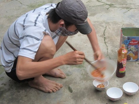 Nói rồi, H. đi lấy một ít mật ong thật (mật ong nuôi), phèn cục, đường tinh luyện, cây đục nác, bột nghệ, vài con ong chết nước lã và chất bảo quản… rồi bắt đầu “phù phép”!