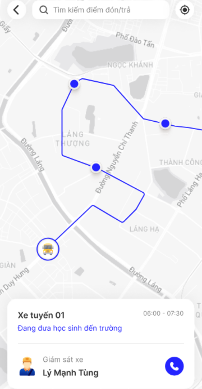 Ngoài ra, nhờ tính năng theo dõi vị trí của xe theo thời gian thực trên bản đồ, phụ huynh và nhà trường cũng có thể xem được xe đang đi đến chặng đường nào, có đến trường đúng giờ hay không.