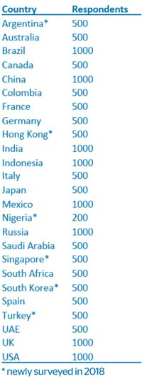Và để minh chứng cho điều đó tháng 8/2018, Travelport – một tổ chức chuyên về cung cấp giải pháp công nghệ kết nối các đối tác trong lĩnh vực du lịch tại Anh Quốc đã thực hiện một cuộc khảo cứu với hơn 16.200 câu trả lời từ 25 quốc gia khác nhau với nhiều nước từ Châu Á, Âu và Mỹ La Tinh.