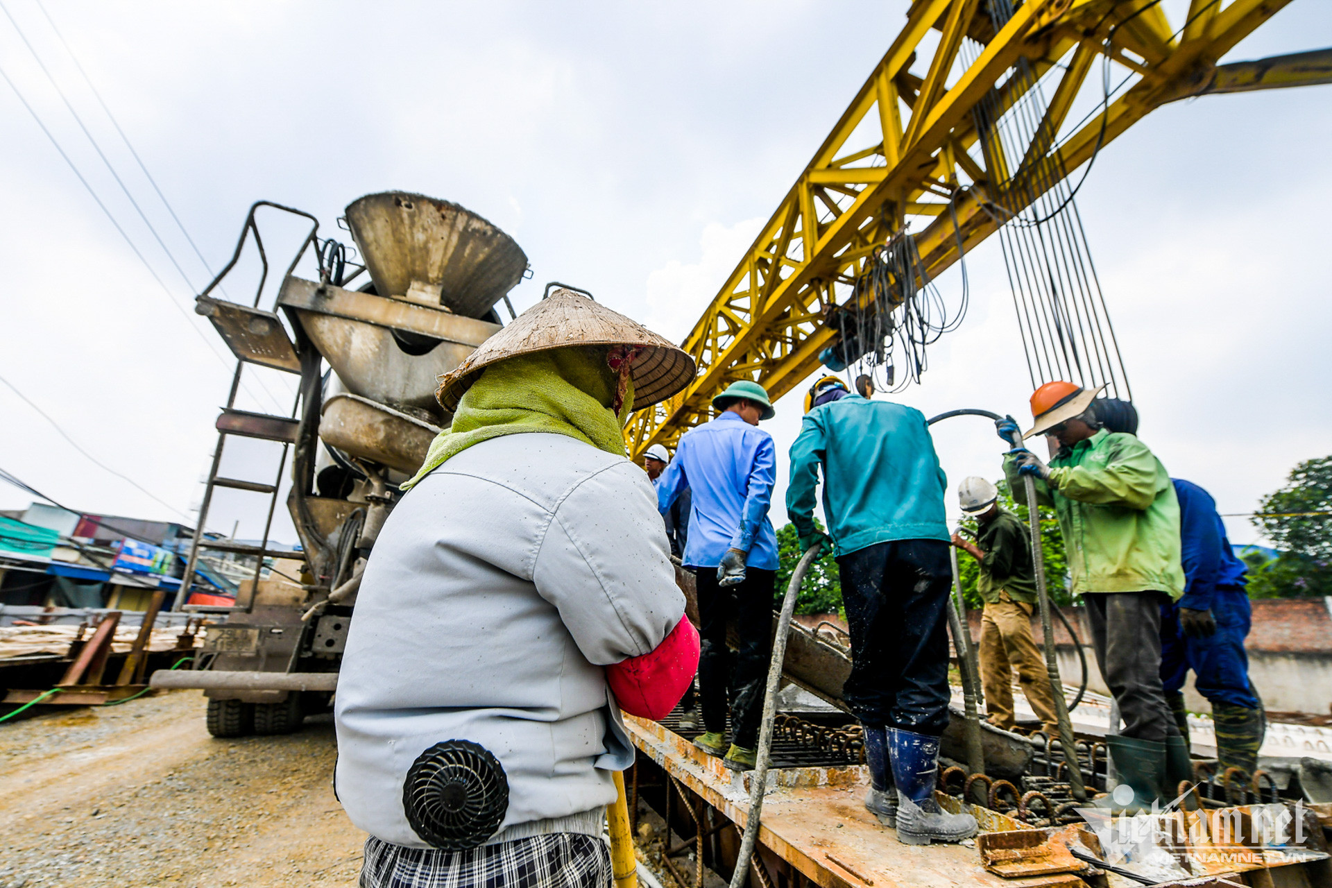 Với quyết tâm đưa dự án hoàn thành kịp tiến độ, hàng trăm công nhân vẫn miệt mài làm việc trong nắng nóng gay gắt.